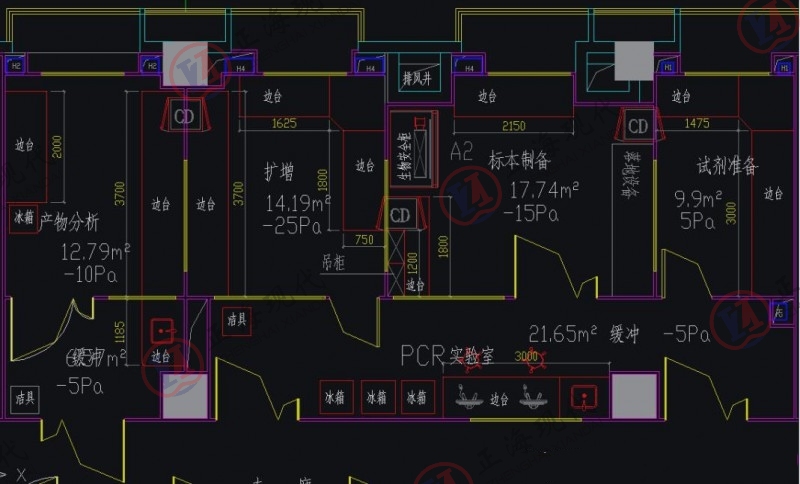 各個(gè)區(qū)域之間應(yīng)具備單向的實(shí)驗(yàn)工藝流、物流、人流與氣流,形成單向流程的保護(hù)屏障,避免實(shí)驗(yàn)室之間的相互干擾,防止核酸氣溶膠對(duì)實(shí)驗(yàn)過(guò)程造成污染產(chǎn)生假性結(jié)果。PCR實(shí)驗(yàn)室并沒(méi)有嚴(yán)格的凈化要求,但是為了避免各個(gè)實(shí)驗(yàn)區(qū)域間交叉污染的可能性,宜采用全送排的氣流組織形式。