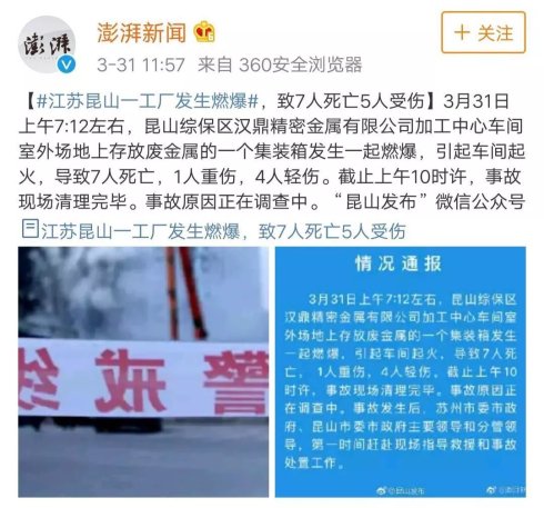 【江蘇鹽城一化工園內(nèi)發(fā)生爆炸】3月21日14時(shí)許,江蘇鹽城市一化工園區(qū)內(nèi)發(fā)生爆炸,江蘇鹽城市消防第一時(shí)間趕到現(xiàn)場,參與救援。到目前為止,已致47人遇難,90人重傷,另有部分群眾不同程度受傷。