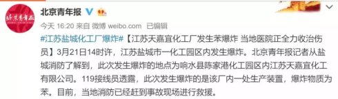 【江蘇鹽城一化工園內(nèi)發(fā)生爆炸】3月21日14時(shí)許,江蘇鹽城市一化工園區(qū)內(nèi)發(fā)生爆炸,江蘇鹽城市消防第一時(shí)間趕到現(xiàn)場,參與救援。到目前為止,已致47人遇難,90人重傷,另有部分群眾不同程度受傷。